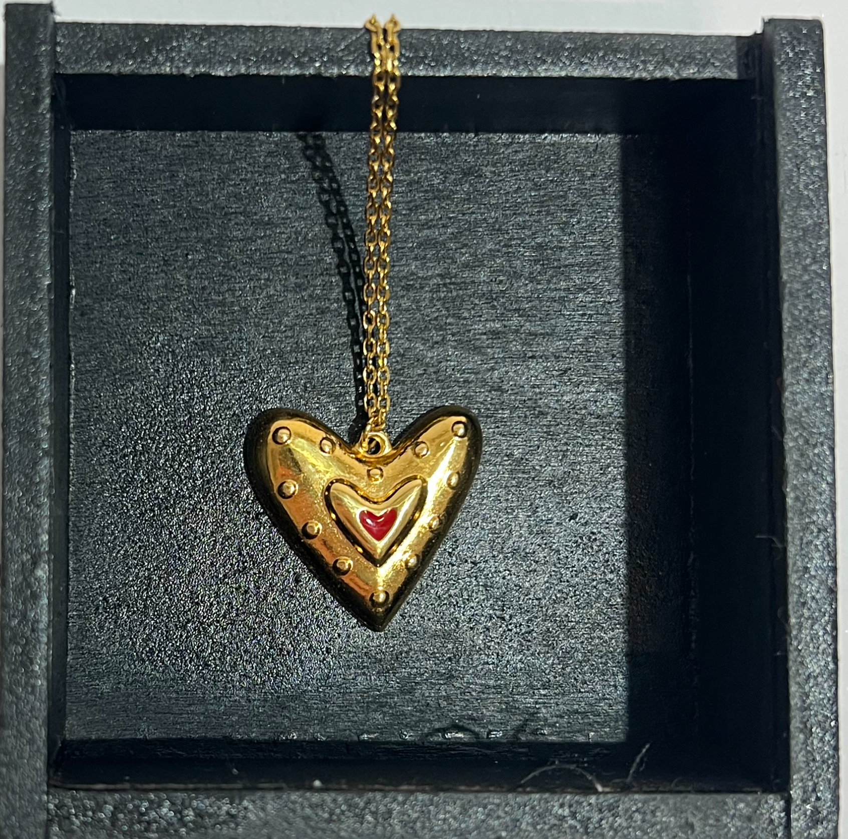 Αλυσίδα ατσάλι, καρδία επιχρυσωμένη 24Κ ζάμακ.